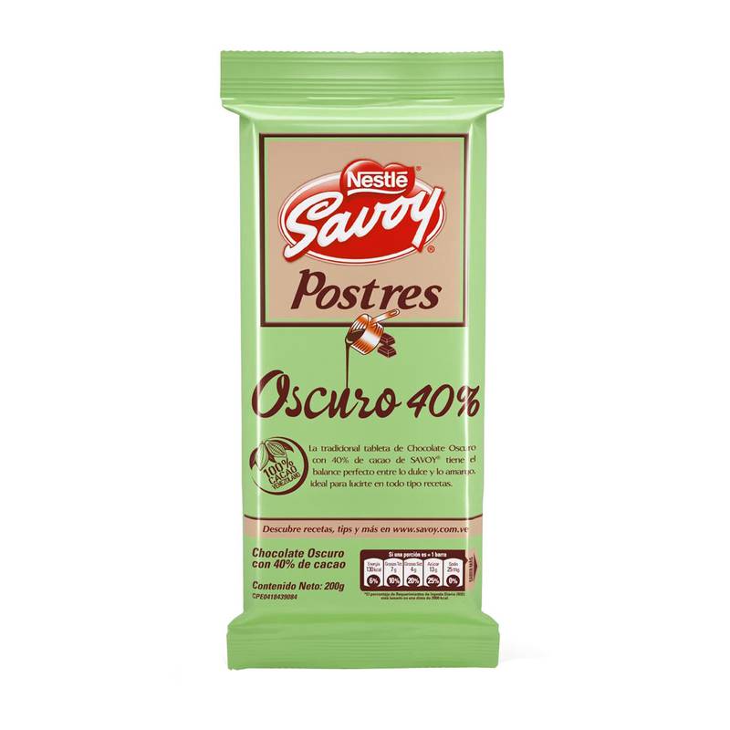 Chocolate oscuro savoy postre 40% 200gr